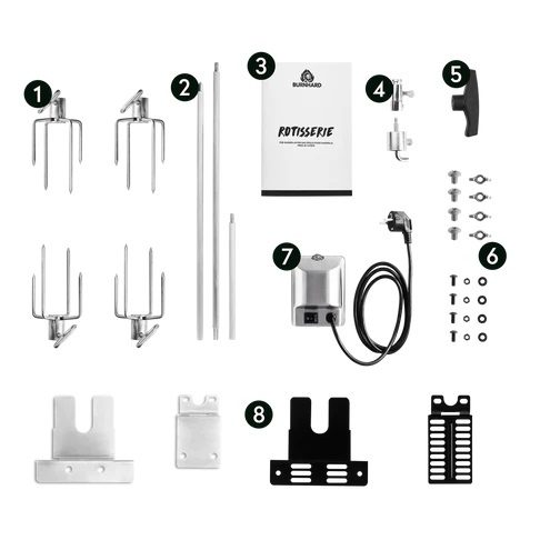 Mit dem Burnhard Drehspieß Rotisserie gelingt saftiges, gleichmäßig gegartes Grillgut auf Knopfdruck. Speziell entwickelt für die 3- und 4-Brenner-Modelle der EARL-Serie, sorgt der leistungsstarke Elektromotor für eine konstante Rotation – ideal für Braten, Hähnchen oder Rollbraten. Die robuste Edelstahlkonstruktion ist langlebig und einfach zu reinigen. Zwei verstellbare Fleischklammern sichern das Grillgut zuverlässig auf dem Spieß. So wird jeder Grillabend zum kulinarischen Highlight.