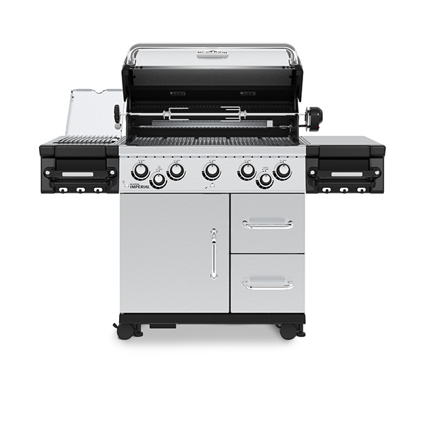Der BroilKing Imperial™ S 590 IR ist ein High-End Profi-Gasgrill aus massivem Edelstahl mit Vollausstattung, der sich an anspruchsvolle Grillmeister richtet. Fünf leistungsstarke Dual Tube Brenner (16 kW), ein Infrarot-Seitenbrenner (2,9 kW) sowie ein Heckbrenner (4,4 kW) bieten eine Gesamtleistung von 23,3 kW. Die Edelstahl-Gussroste kombinieren die besten Eigenschaften von Guss- und Edelstahlrosten: hohe Hitzespeicherung, tolle Brandings und einfache Reinigung. Das Flav-R-Wave Verdampfungssystem garantiert ein intensives Aroma ohne Fettbrand. Der Grill bietet eine große Grillfläche, integrierte Grill- und Bedienknopfbeleuchtung, ein geräumiges Unterschrankmodul mit 2 Schubladen und eine elegante Edelstahlkonstruktion. Der Infrarot-Seitenbrenner erreicht Temperaturen bis zu 800 °C und sorgt für perfekte Krusten und saftiges Grillgut. Inklusive Drehspieß-Set mit Motor, Schlauch, Druckminderer und Grillrostheber.