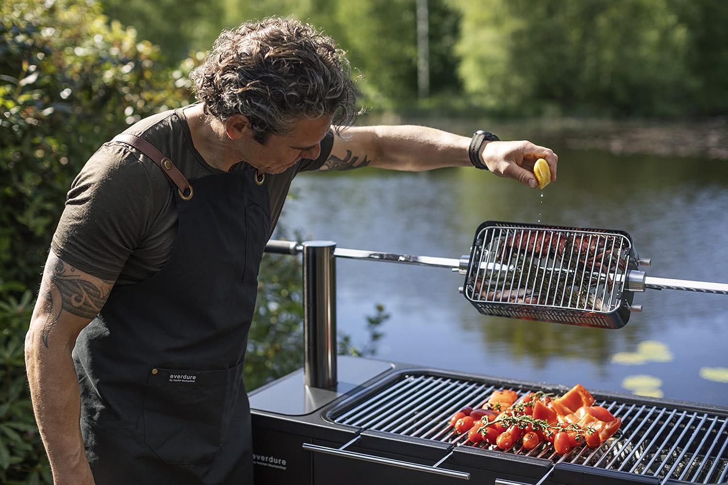 Der Everdure Rotisseriekorb ist die perfekte Ergänzung für Ihre Grill-Rotisserie – ideal für Fleisch, Fisch, Meeresfrüchte, Gemüse oder sogar Pommes. Er ist mit den Everdure Modellen HUB™, HUB™ II, Fusion™ sowie allen anderen Grills mit einem Spießdurchmesser von 8 mm oder 16 mm kompatibel (Adapter inklusive). Das patentierte Cliplock™-System sorgt für sicheres Grillen, während das PVD-beschichtete Gehäuse in Lebensmittelqualität eine gesunde, fettfreie Zubereitung ermöglicht. Vier höhenverstellbare Ebenen und eine Antihaftbeschichtung machen ihn besonders vielseitig und leicht zu reinigen – jedoch nicht spülmaschinengeeignet.
