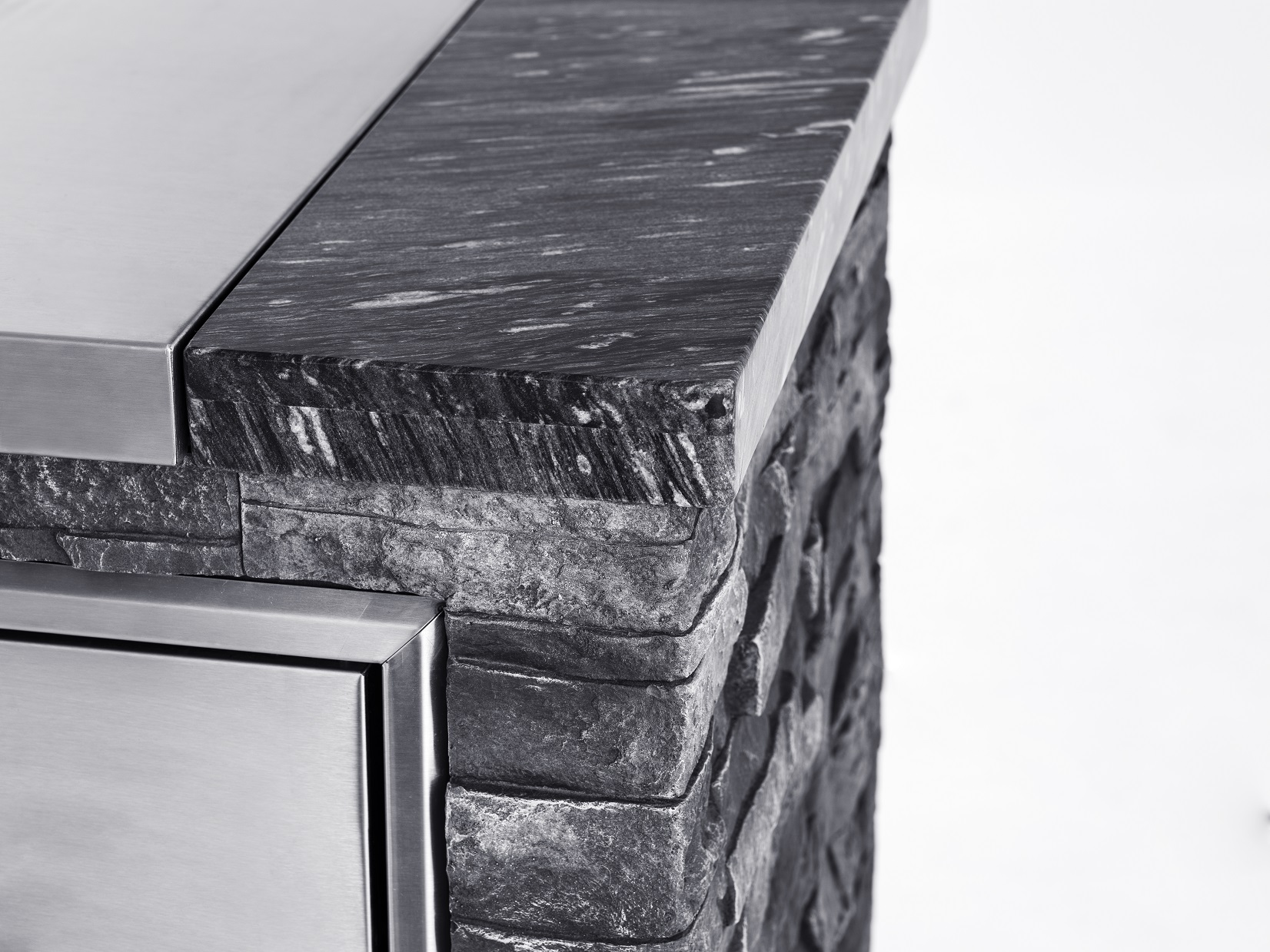 Das GrandPro® 222 Series Stone Island Modul mit Maxim G5 Einbaugrill verbindet stilvolles Design mit höchster Funktionalität für eine effiziente und komfortable Outdoor-Küche. Mit einer hochwertigen Arbeitsfläche in Steinoptik, einem integrierten Spülbecken, einem Mülleimer sowie einem Gasflaschenfach bleibt Ihr Grillbereich stets ordentlich und gut organisiert.