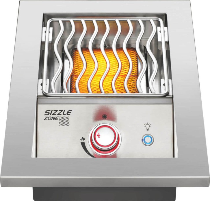 Die Infrarot SIZZLE ZONE™ der Serie 700 eignet sich perfekt zum Anbraten von Fleisch oder zur Zubereitung von Beilagen und Saucen, während der Hauptgrill in Gebrauch ist. Die 10-Zoll-Drop-In-Infrarot-SIZZLE ZONE™ bietet die Möglichkeit, saftige Steaks in Restaurantqualität anzubraten. Gefertigt aus hochwertigem Edelstahl in Marineausführung, fügt sich der Brenner nahtlos in jede Outdoor-Küche ein und bietet langlebige Qualität. Die 7,5 mm dicken Grillroste sorgen für die typischen Grillstreifen eines Napoleon-Grills, und das JETFIRE™ Zündsystem ermöglicht einhändiges Zünden. Die beleuchteten Bedienelemente sorgen für Atmosphäre und Sicherheit, da sie von blau auf rot wechseln, sobald der Brenner aktiviert ist.