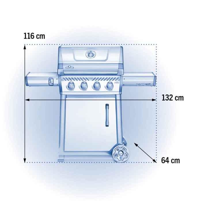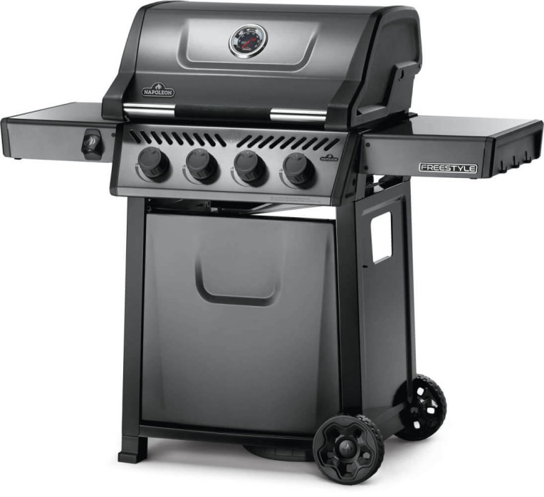 Der Propangasgrill Freestyle 425 ist kompakt, bietet jedoch erstklassige Funktionen zu einem unschlagbaren Preis-Leistungsverhältnis. Das zuverlässige JETFIRE™ Zündsystem entzündet die vier Edelstahlbrenner schnell und einfach. Die porzellanemaillierten Grillroste aus Gusseisen sorgen für ein gleichmäßiges Anbraten und schützen vor Rost. Die gleichmäßige Hitzeverteilung wird durch die Edelstahlbrenner und die Flammenschutzeinsätze gewährleistet und lässt sich über das ACCU-PROBE™ Thermometer kontrollieren. Robuste Rollen ermöglichen es, den Grill mühelos an jeden gewünschten Ort zu schieben. Mit den praktischen Seitenablagen, die sich leicht einklappen lassen und Haken für Grillbesteck sowie einen integrierten Flaschenöffner enthalten, passt sich der Freestyle perfekt an Ihre Bedürfnisse und den verfügbaren Platz an.