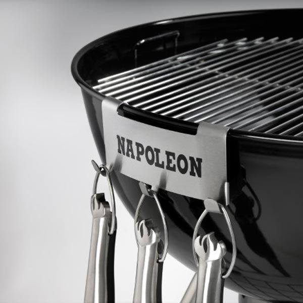Platz für Grillzange, Wender und Co. bietet der elegante Besteckhalter von Napoleon. Ausgestattet mit drei Haken wird dieses praktische Tool einfach am Kesselrand eines Rodeo-Kugelgrills eingehängt. Der Besteckhalter im stilvollem Design ist aus beschichtetem Stahl gefertig, strapazierfähig und langlebig.