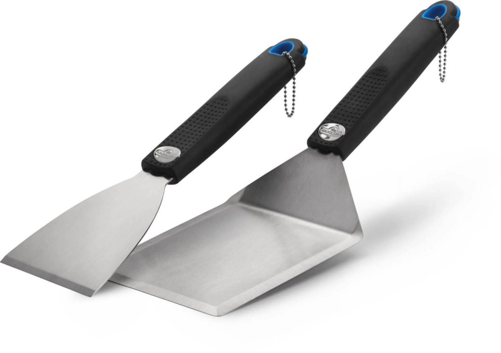 Das NAPOLEON® 2-teilige Plancha Grillbesteck-Set ist speziell für die Zubereitung auf der Plancha oder Grillplatte entwickelt. Das Set enthält einen breiten Edelstahl-Wender und einen praktischen Schaber, die beide perfekt für das Wenden, Portionieren und Reinigen geeignet sind. Gefertigt aus hochwertigem Edelstahl, sind die Werkzeuge langlebig und leicht zu reinigen. Ergonomische Griffe sorgen für Komfort und sicheren Halt während des Grillens.