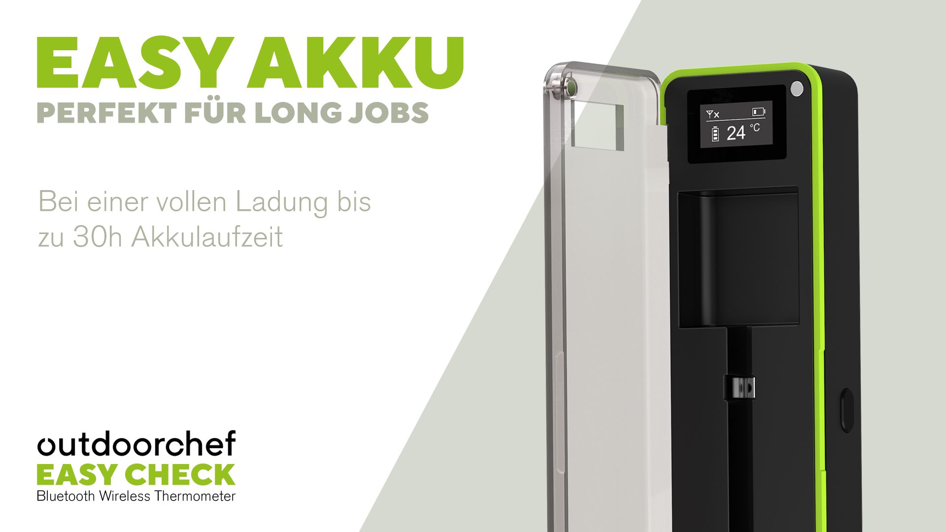 Die leistungsstarken Akkus ermöglichen eine Laufzeit von über 30 Stunden und eignen sich damit hervorragend für Low-&-Slow-Gerichte oder lange BBQ-Sessions. Der robuste Temperaturfühler ist bis zu 300 °C hitzebeständig sowie spülmaschinenfest und überzeugt dadurch mit hoher Alltagstauglichkeit und einfacher Reinigung. Nach dem Gebrauch wird der Fühler einfach im Dock geladen und sicher aufbewahrt.