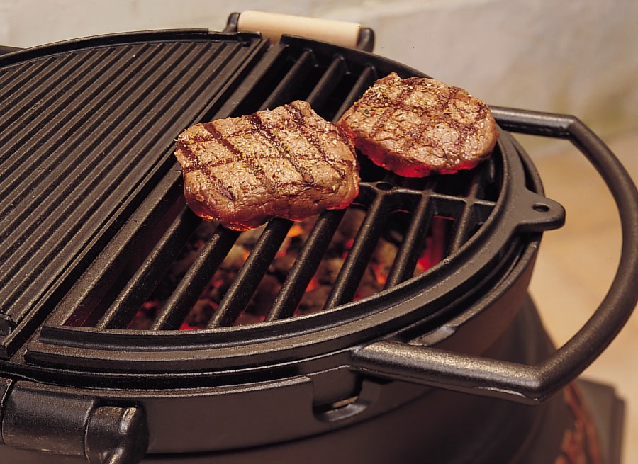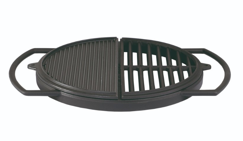 Das Wende-Grillrostsegment aus schwarz matt emailliertem Gusseisen bietet zwei funktionale Grillflächen: eine glatte Seite für mageres Grillgut wie Fisch oder Gemüse und eine gerillte Seite mit Auffangrillen – perfekt für fettes Fleisch. Dank des hochwertigen, lebensmittelechten Gussmaterials überzeugt das Segment mit ausgezeichneter Hitzespeicherung und Langlebigkeit.