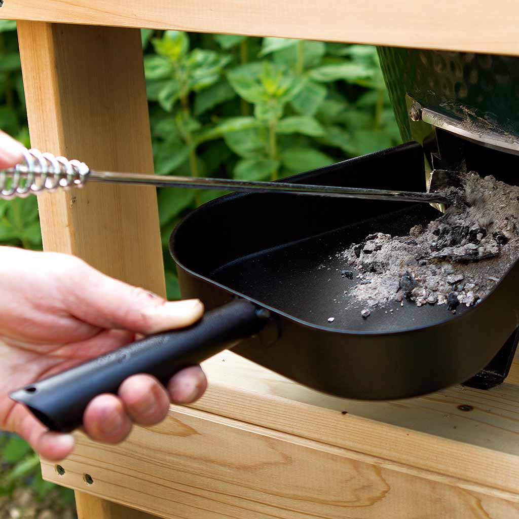 Der Ascheschieber für die Modelle Large & Medium von Big Green Egg ist ein praktisches Werkzeug mit Doppelfunktion: Einerseits ermöglicht er das einfache Entfernen der Asche aus dem Basisteil des Grills, andererseits kann er als Schürhaken verwendet werden, um die Holzkohle neu zu positionieren. Ein unverzichtbares Zubehör für eine saubere und effiziente Grillvorbereitung.