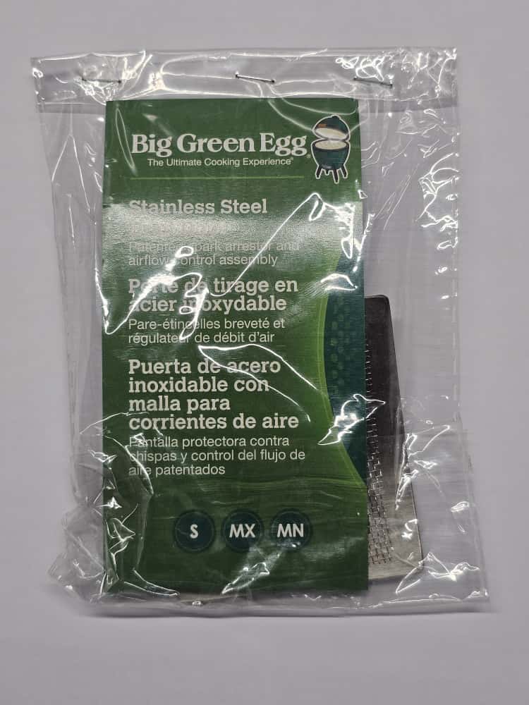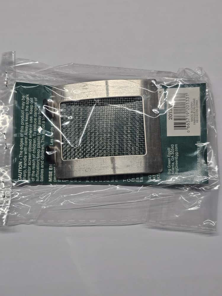 Das EGG Mesh Draft Door Panel ist das originale Lüftungsgitter für Big Green Egg Modelle der Größen Small (S), Minimax (MX) und Mini (MN) aus Baujahr 2019 oder älter. Es besteht aus hochwertigem Edelstahl und dient der präzisen Regulierung der Luftzufuhr im unteren Bereich des Grills.