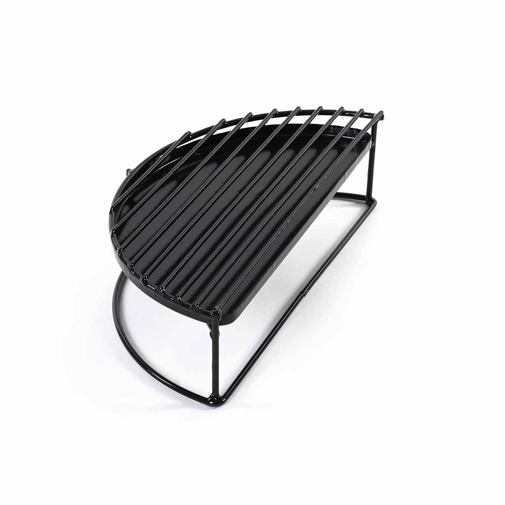 Perfekt für das gleichzeitige Zubereiten von Speisen mit unterschiedlichen Temperaturen oder um ein bereits gegrilltes Stück Fleisch warmzuhalten. Die Rosterhöhung kann zudem mit dem halbrunden Backstein kombiniert werden.
