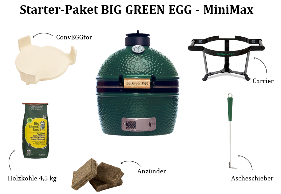 Das Big Green Egg MiniMax Starter-Paket bietet alles, was Sie benötigen, um sofort loszulegen. Mit einem Rostdurchmesser von 33 cm und einer Kochfläche von 855 cm² ist das MiniMax ideal für kleinere bis mittlere Grillpartys oder als tragbarer Grill für unterwegs. Trotz seiner kompakten Größe bietet er alle Vorteile eines Big Green Eggs, einschließlich exzellenter Wärmeisolierung und Temperaturkontrolle. Das Starter-Paket enthält neben dem MiniMax auch nützliche Zubehörteile wie das EGG Carrier für den einfachen Transport, den convEGGtor für indirektes Grillen und 4,5 kg Holzkohle.