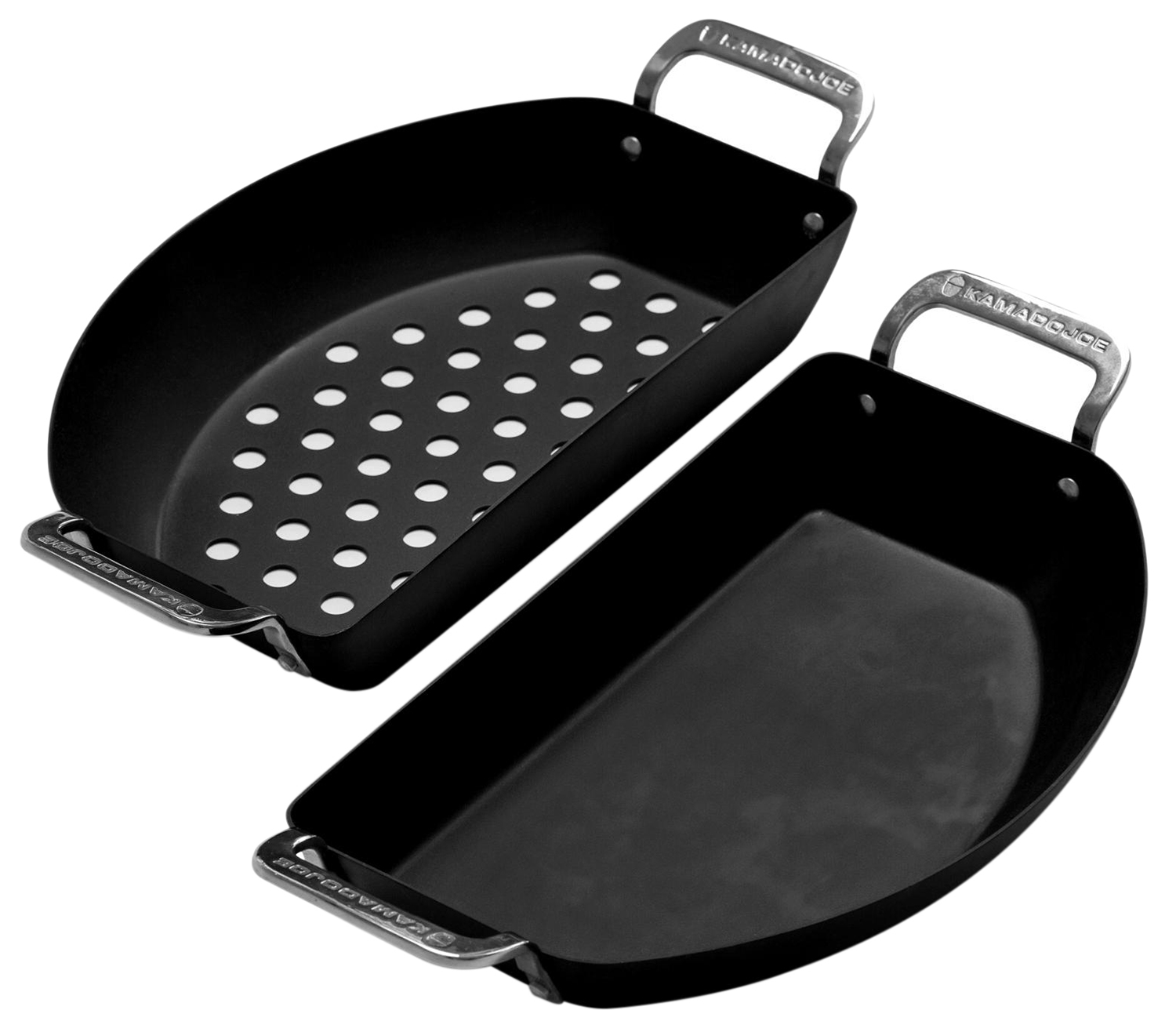 Das Set besteht aus einer geschlossenen und einer gelochten Pfanne, die optimal in das flexible Divide & Conquer® Cooking System passen. Mit dem 2-stufigen System können Sie in den Pfannen verschiedene Gerichte gleichzeitig in unterschiedlichen Temperaturbereichen auf Ihrem Kamado Joe Keramikgrill zubereiten.