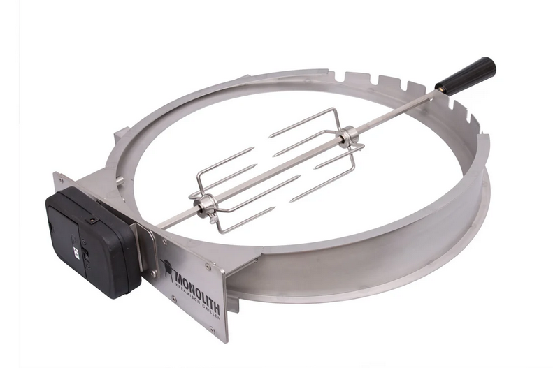 Mit der Rotisserie für den Monolith Classic Keramikgrill verwandeln Sie Ihren Grill in einen vollwertigen Drehspießgrill – ideal für Spießbraten, Hähnchen oder Gyros. Die spezielle Keilform sorgt für eine passgenaue Auflage auf dem Classic-Modell, wobei der Deckel weiterhin bündig geschlossen werden kann, um die Hitze optimal zu nutzen.