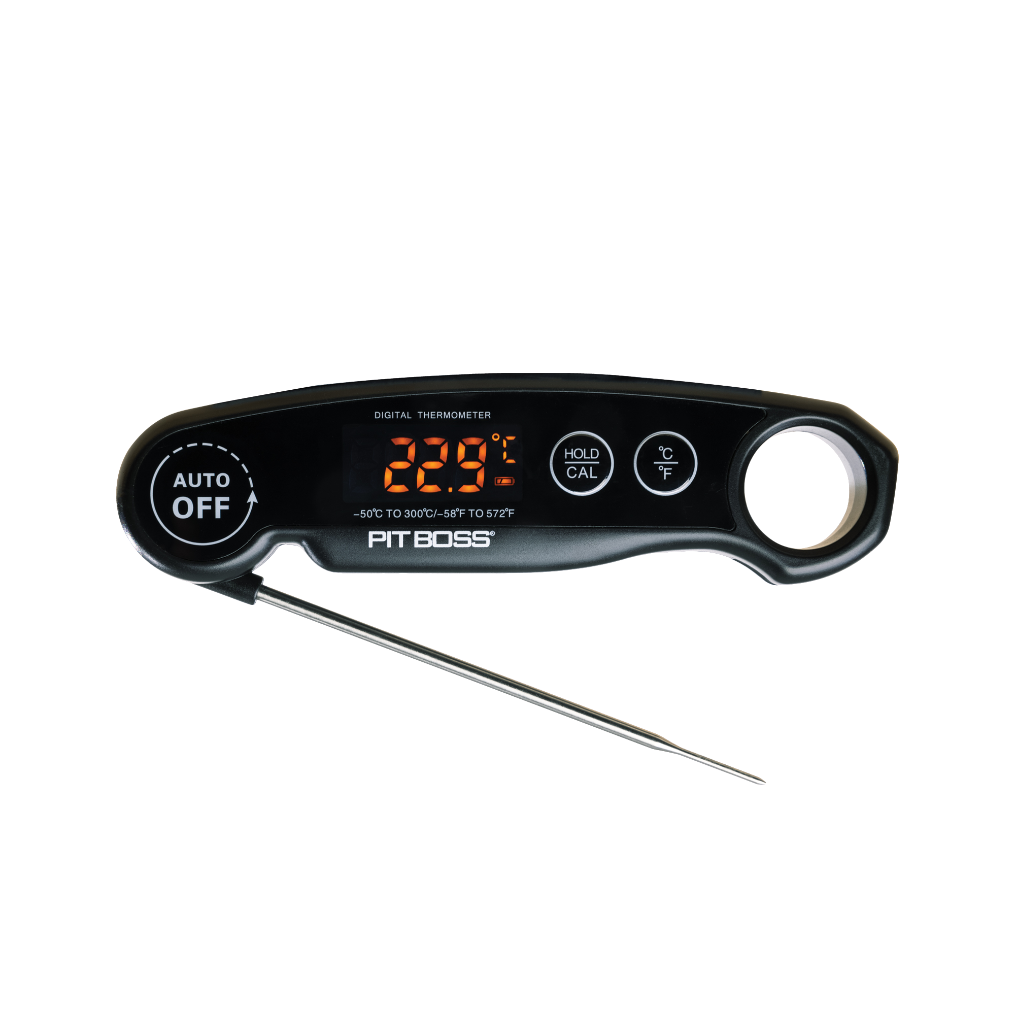 Mit dem digitalen Fleischthermometer von Pit Boss werden Ihre Speisen nie wieder zu lange gegart. Sie erhalten genaue Messungen der Innentemperatur des Fleisches, das Sie zubereiten, für ein perfektes Grillerlebnis. Das digitale Thermometer verfügt über eine große LED-Anzeige, die klar und einfach abzulesen ist. Außerdem ist es einfach zu reinigen: Sie brauchen nur milde Seife und heißes Wasser, um festsitzende Lebensmittel oder Fett von der Sonde zu entfernen.