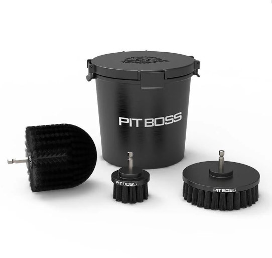 Das Pit Boss Pro Series Grillreinigungszubehör-Set erleichtert die Reinigung von Grillrosten, Aschekasten, Fettauffangschale, Grillkammer und Schornstein. Die hochwertigen Nylonbürsten sind mit allen gängigen Bohrmaschinenmarken kompatibel und ermöglichen eine gründliche Reinigung selbst an schwer zugänglichen Stellen. Das Set enthält 3 Bürstenkopf-Bohrmaschinenaufsätze, eine Verlängerungsstange und einen praktischen Reinigungseimer mit Deckel, der gleichzeitig als Reinigungsstation für die Bürsten dient.