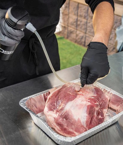Injizieren: Für tiefes Einbringen von Marinaden oder Flüssigkeiten ins Fleisch