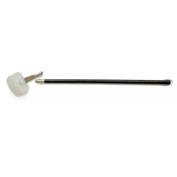 Das durchdachte Design umfasst einen abschraubbaren Kopf, wodurch der Schieber leicht zu reinigen und platzsparend zu verstauen ist. Mit einer Gesamtlänge von ca. 90 cm bietet dieses hochwertige Werkzeug maximale Effizienz und Komfort für alle Grillliebhaber.