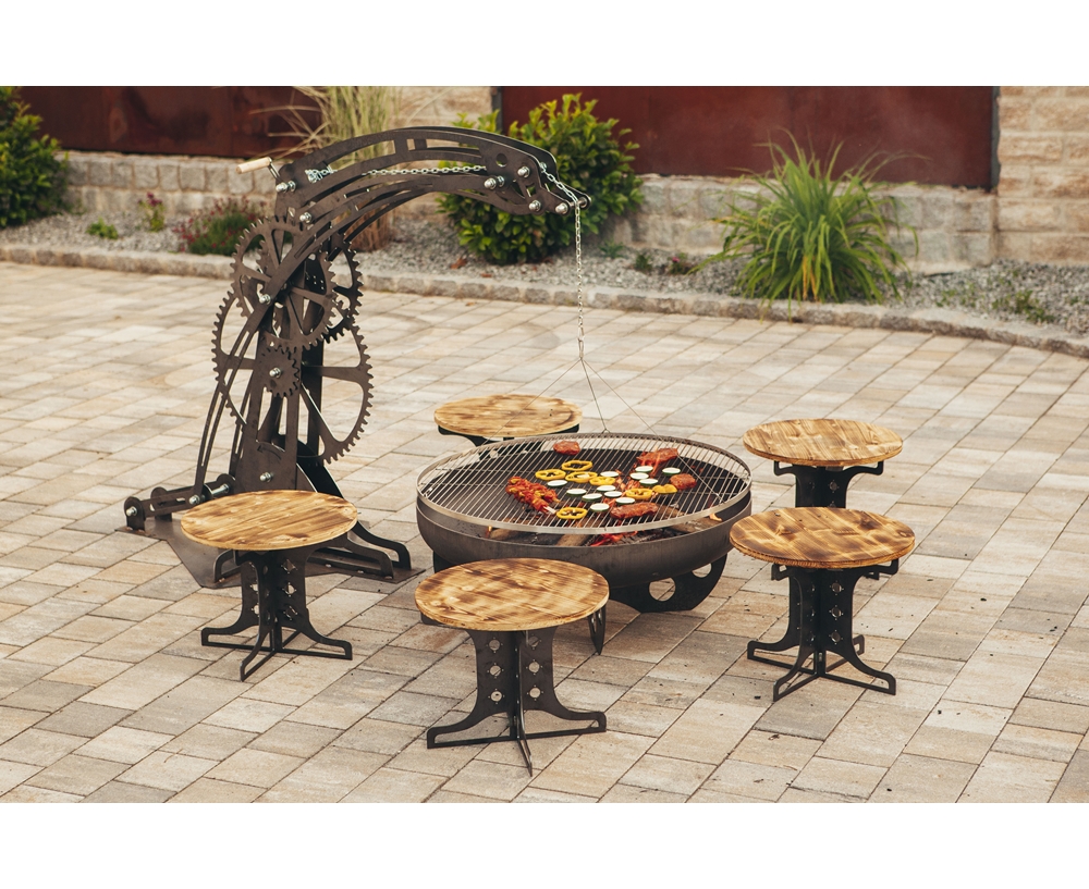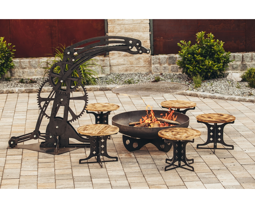 Dieses robuste Grill- und Feuerstellen-Set vereint funktionales Design mit rustikalem Charakter und eignet sich ideal für gemütliche Abende im Freien mit Familie oder Freunden. Die stabile Grillaufhängung trägt einen höhenverstellbaren Edelstahl-Grillrost, mit dem sich die Hitze optimal regulieren lässt. Darunter sorgt die großzügige Feuerschale für eine gleichmäßige Wärme und eignet sich hervorragend für offene Holzfeuer.