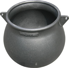 Lagerfeuertopf aus Gusseisen, muß vor dem ersten Kochgang noch gereinigt und eingebrannt werden. Ideal für ein Dreibein über dem Lagerfeuer geeignet.Kessel, 10l, Durchmesser (oben) = 20 cm